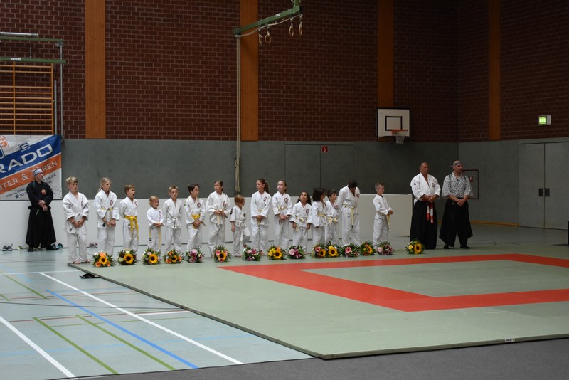 Ca. 400 Zuschauer sahen zuerst die Katawettbewerbe. Hier gingen die Sportler in den Kategorien traditionelle Kata mit oder ohne Waffen und freie Kata mit oder ohne Waffen an den Start.
